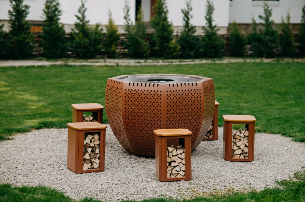 Stilvolle Stühle, die perfekt auf das Design des CRATERFLAME® Grills abgestimmt sind.
