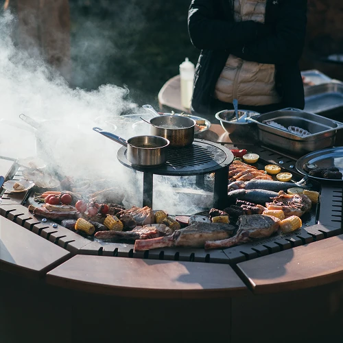 Ob Fleisch, Gemüse, Pizza, Eintopfgerichte im Kessel oder sogar traditioneller Baumkuchen – nahezu jedes Gericht lässt sich darauf zubereiten. Dank des vielseitigen Zubehörs und der Möglichkeit, stabil über offener Flamme zu kochen, hebt sich das Grillerlebnis auf ein völlig neues Niveau: kreativ, eindrucksvoll und geschmacklich außergewöhnlich.